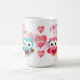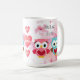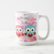Original painting of two cute owls, one pink for a girl, the other blue for a boy and floral watercolor pink flower blossoms background. "I love you with owl my heart" and "Owl always love you" quotes. You can also personalise it with a name or favourite expression of your own. Classic 15 ounce coffee cup.