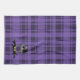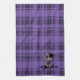 Custom American MoJo Kitchen Towel 16" x 24" with a vector graphics art design of a cute purple, grey, and black emo owl with hair and a purple skull bow sitting on a branch with a broken heart and a purple plaid pattern background.