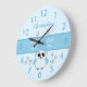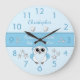 A cute owl clock for your baby boy's nursery or playroom, sprinkled with some silver stars and hearts and the words 'Dream Big, little One.' Just add his name.