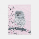 Cute Owl Cherry Blossoms Pink Grey Floral Fleece Blanket