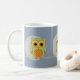 Adorable wide eyed owl in funky 70s inspired retro hues of green and orange.