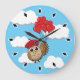 Cute Owl Flying with Heart Balloons Large Clock