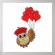 Cute Owl Flying with Heart Balloons Poster