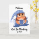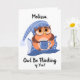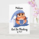 This adorable owl is not feeling well so he's in bed with a cosy hat and cup of tea. You can customise all text fields but the recipient's name plus the phrase "Owl Be Thinking of You!" is written on the front. The phrase "Please Get Well Soon" is written on the inside.