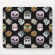 Cute Owl Illustrations over Black Background Mouse Pad
