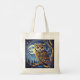A mysterious Tote bag with an owl sitting on a tree branch in the night sky