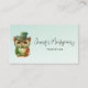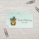 Business cards with a wonderful whimsical illustration. A big eyed brown owl wearing a fancy green top hat and bow tie.