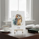 Cute owl in watercolor postcard