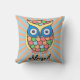 Cute multi coloured owl with a sunburst in the background. Customise child's name.