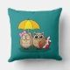Cute Owl Lovers w/ Umbrella & Red Chocolate Box Cushion