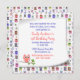 Whimsical children birthday party invitation, with colourful little cartoon owls, decorating the background. Graphics of a curled paper text layer has a lone peach coloured owl, on a branch, at the bottom. All text is customisable and ready to personalise for your child's special day. Adorable invitation for the younger child.