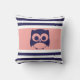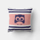 Cute, simple, modern and trendy Owl bird with Stripes print or pattern design for square Throw and Lumbar size Pillows or Cushions. Navy blue, Coral and white striped colour background. This classic contemporary design will enhance any home decor, living room, sofa, bedroom, office, boat, beach house, university or college dorm room, teenagers, nursery, girls, boys, baby and kids rooms. Choose your size of pillow or cushion. Click the ‘Customise it’ button to personalise your gift by adding your own initials, monogram or name. Choose your own font and colours to make it your own.