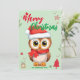 Cute Owl santa Christmas Holiday Family name kids Card