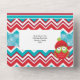 A beautiful all-in-one festive Christmas design in red blue and white featuring snowflakes; chevron zigzag stripes and polka dots on which a white inlay appears with your personalised wording and a vibrant, cute owl wearing a Santa hat. The bottom third has a tear off response card with personalised rsvp address for your guests to complete. These are ideal for all corporate and business year end functions; Christmas celebrations and Xmas in July events.
