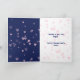 An adorable little pink owl carries valentine balloons in front of a big pink heart. The white text on the heart says "Whoooo will be my Valentine". The images and text are placed on a navy blue background with soft pink floating hearts. The inside has a repeat of the floating hearts, with your custom text. *Thanks to Pretty Graphic Design for the images used in this design.