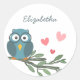 Cute Owl with eyeglasses on a branch custom name Classic Round Sticker