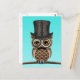 Cute Owl with Monocle and Top Hat Blue Postcard