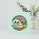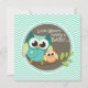 Cute, custom owls themed baby shower design on aqua green; turquoise and white chevron stripes pattern. Features teal mummy owl with orange baby on branch with leaves. Neutral baby shower or baby sprinkle design for baby boy or girl that you can personalise. Visit our store, Favours and Decor, for many more great party gifts and decorations for goody bag stuffers and funny decor. Thank you!