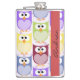 Cute Owls, Owl Pattern, Colourful Owls, Your Name Hip Flask