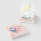 The coasters are gorgeous, a quality feel and heavy weight. They look like a precious archeological find. A rustic stone juxtaposed with a modern floral black and white print. I like the way the print goes slightly imperfect on the cut stone edges giving them a kind-of natural beauty.