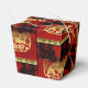 In a square are 2 black Oxen, placed under a golden shape inside of which is the third ox with ideogram. Behind the scene there is a red background on which decorative and ornate letters form the words: OX YEAR. Design on take-out favour box.Available in tent, cube and gable favour boxes. Matching greeting card, holiday postcard and more... Perfect for Chinese New Year of the Ox 2021 or birthday (people born in Ox Year).
