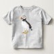 A painted illustration of a puffin. This cute bird is drawn in the style of a children's book illustration. It has stitches and threads on its feathers. A design for anyone who loves puffins.