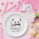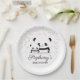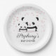 Customise this Stylish Modern Clean Fresh Baby Shower Paper Plate featuring an original image of two cute simple panda bears, one bigger and the other one smaller baby on a white background. Pandas are having cute pink noses, pink hearts are showering around them.
