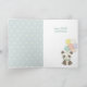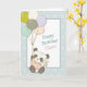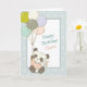 On the front of this pretty birthday card is a little black and white panda bear who is being carried away by colourful pastel balloons. The teal and dusty pink text inside a pattern frame says "Happy Birthday (name)". Inside the text says "Have a BEARY wonderful day". There's another image of the bunny with the balloons and pink flowers at the bottom. All the text is easily customised to anything you'd like.