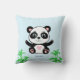 Cute Panda Bear & Bamboo on Light Blue Cushion