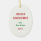 Here's a cute Christmas ornament for any grandchild who loves panda bears. A wide eyed black and white panda holds a candy cane and wears a Santa hat. Below the image is your special child's name in green. The image is framed with a pretty red, green, and white candy cane stripe pattern. The back of the ornament has the same striped frame, and more text fields for you to customize.