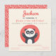 NewParkLane - Colourful Kids Birthday Party Invitation, with a cute panda bear against a red and off-white background. The backside has a cute polkadots pattern.