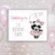 Little girl's 1st birthday party poster featuring a cute panda bear ballerina dancer wearing a pink tutu. Customise with your child's name and age. Contact us for help with customisation or to request matching products.