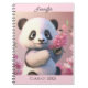 Cute Panda Bear Pink Flowers Personalise Name Gift Spiral Notebook