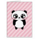 Super cute kawaii panda design on pink stripes background.