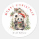 Cute Panda Bear Rustic Christmas house Classic Round Sticker
