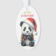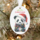 This is a cute Christmas ornament for parents or grandparents to give to a child, but it can be easily customised as a gift for anyone. The front of the ornament has an image of an adorable Panda Bear wearing a Santa hat. He is wrapped up in a string of colourful Holiday lights. The green and red text says "MERRY CHRISTMAS". The back of the ornament has your custom text which is separated by a small candy cane and holly bouquet. Easily change the text to anything you'd like!