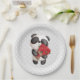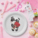 Cute Panda Bear with Rose Bouquet Paper Plate