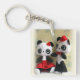 Two lovely and cute panda bears for this wonderful Key Chain. They are obviously a loving couple. She is wearing a red skirt and a red rose on her head, he is wearing a red hat and a bowtie. These two panda bears are my handmade creations. They can be viewed at my store AresCrea on Meylah.com