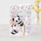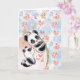An adorable and very cute illustration featuring two panda bears surrounded by scattered candy cane hearts on sticks with ribbons tied to them an pretty pastel blue hearts. The one panda is climbing an arched bamboo pole and the other is leaning up to give it a kiss. The card is ideal for Valentine's Day celebrations; for romantic anniversary events and gatherings; as engagement party invitations or as a card for a wedding or from the bridal couple to say thank you to guests for attending their wedding day. Personalise the inside to suit your special occasion.
