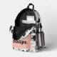 Lightweight and durable, our custom all-over-print Backpack is just what you need. The spacious interior is ideal for travel, school, gym, or any mobile storage need. Bring your stuff with you in style! Features Adjustable padded shoulder straps, two chambers on the inside for laptop storage, mesh side pockets and an identification label.