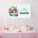 A birthday banner with an adorable summery image. A watercolor design with a black and white panda sitting in a swimming ring in the water. Surrounded by pretty wildflowers. A totally chill bear.