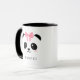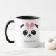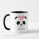 Cute panda face personalised mug. Pretty chubby kawaii panda face with pink cheeks wearing a pink ribbon. Easily add your name to personalise the mug. You can change the mug colour. Lovely gift for a girl, a daughter, girlfriend on a birthday or other special occasion.