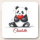 Cute Panda Holding Heart with Customizable Name Coaster
