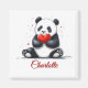 This heartwarming illustration features a charming cartoon panda sitting upright and cradling a big red heart. The panda's expression is one of pure joy and love, making it an instantly endearing image. This design can be personalized by adding a name, creating a unique and cherished keepsake.