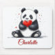 This heartwarming illustration features a charming cartoon panda sitting upright and cradling a big red heart. The panda's expression is one of pure joy and love, making it an instantly endearing image. This design can be personalized by adding a name, creating a unique and cherished keepsake.