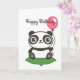 A cute baby panda sitting on the pillow and holding a balloon. A simple design for every panda lover. Customisable background colour.