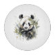 watercolor painting of a cute panda sitting in between bamboo grass on a white background