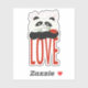 Adorable, cartoon cute panda bear with romantic red rose flower, hearts and love caption sweet sticker for kids.