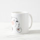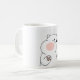 This ceramic mug features a minimalist and cute illustration of a white cartoon bear with chubby cheeks and small paws, highlighted with pink accents. The bear has an adorable and slightly shy expression, making it a perfect choice for adding a touch of whimsy and charm to your morning coffee or tea routine.