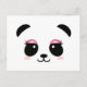 Cute panda with pink eyelashes postcard. Kawaii black and white panda bear face with trendy pink eyelashes.